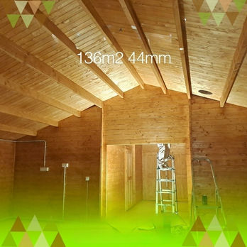 Montagem da casa, tratamento exterior a óleo e Cobertura em telha sandwich 50mm